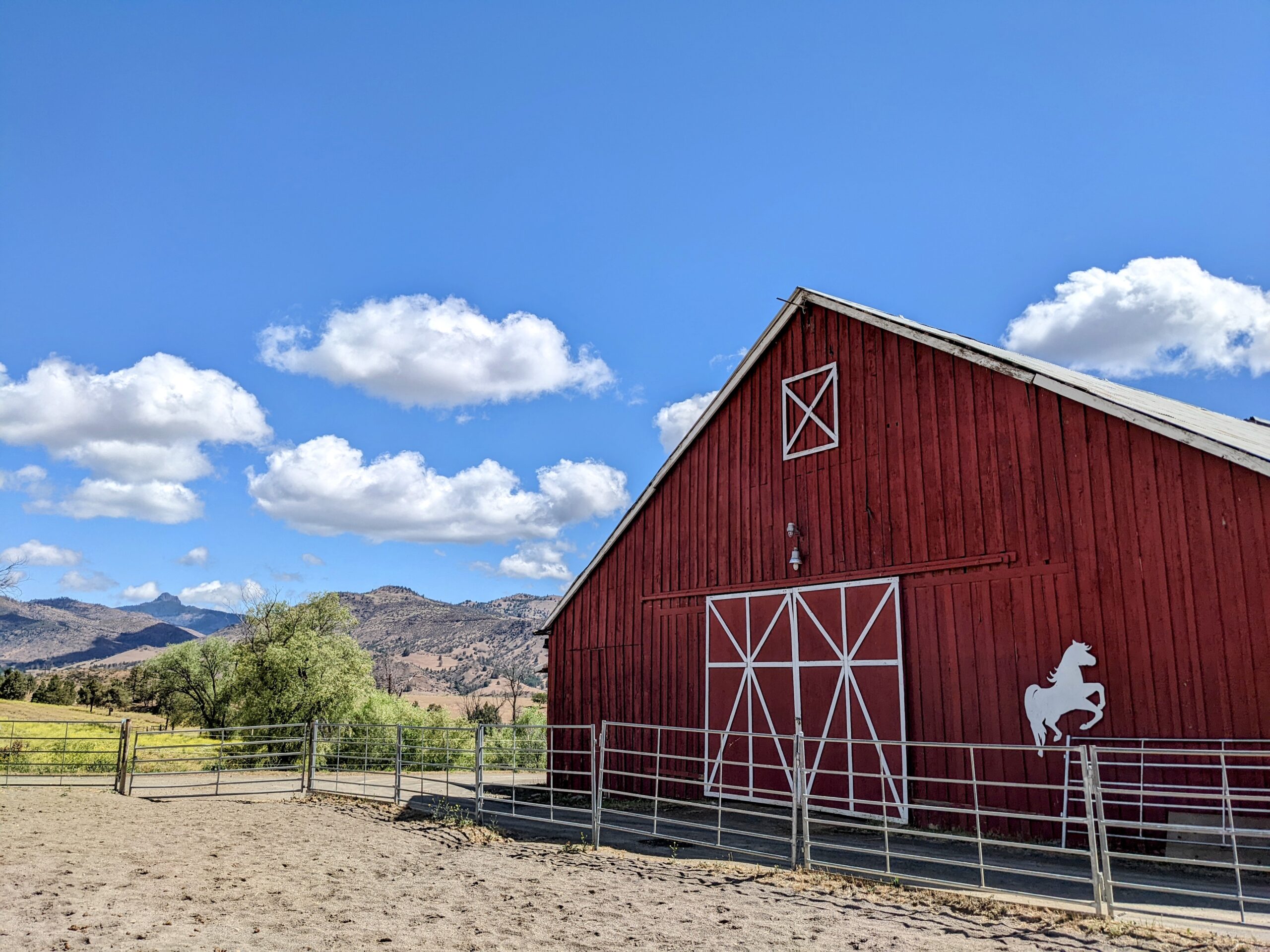 White pasture fences, a classic ranch entry arch, scenic hillside, and peacefully grazing horses welcome visitors to the Headquarters of the R-Ranch. Located just outside the town of Hornbrook, California, our Headquarters is where all official ranch business is conducted, and where you can purchase your R-Ranch souvenirs and/or ownership.